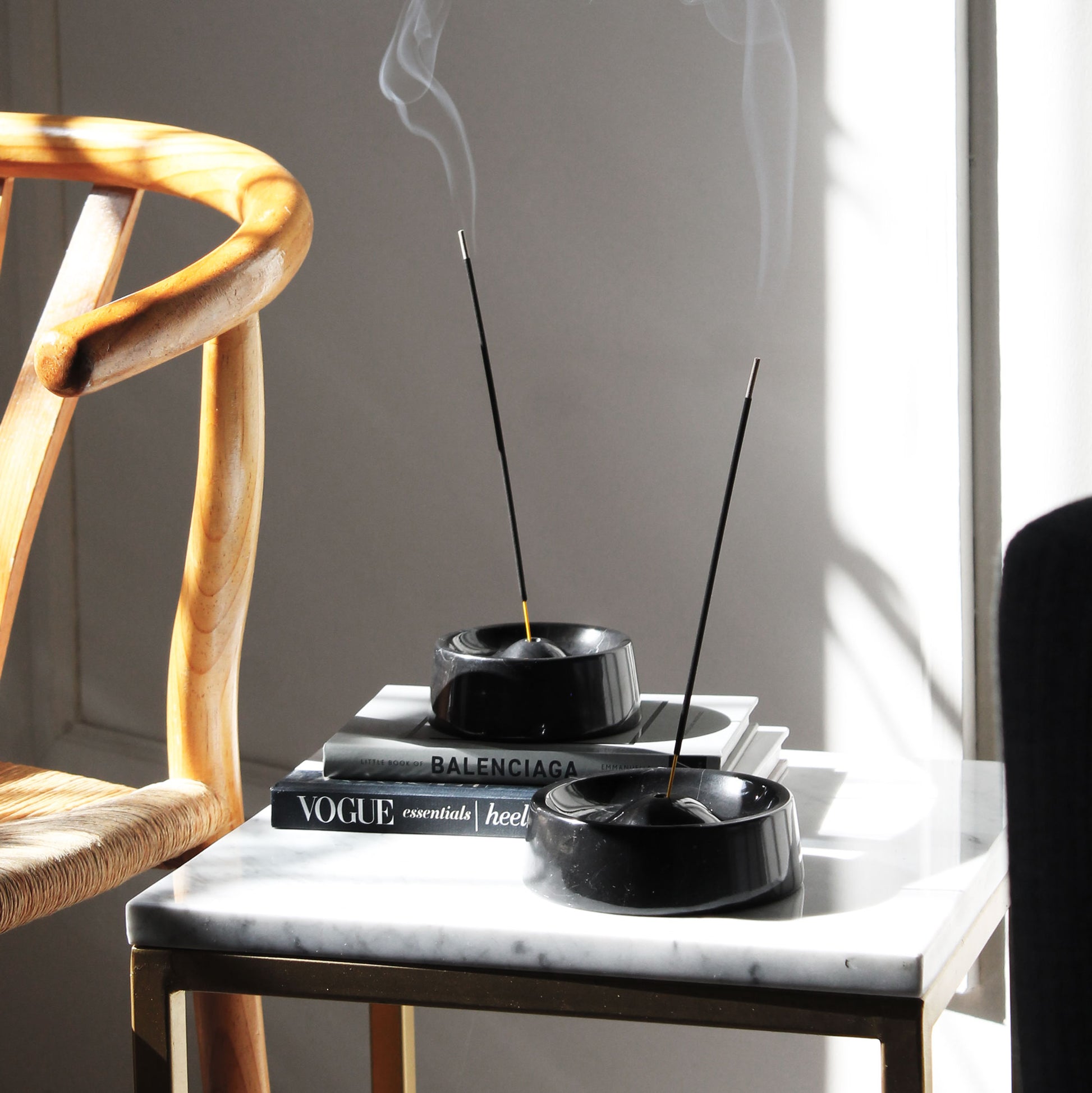 Porta Incienso de mármol disponible en mármol blanco y negro disponible en dos tamaños.